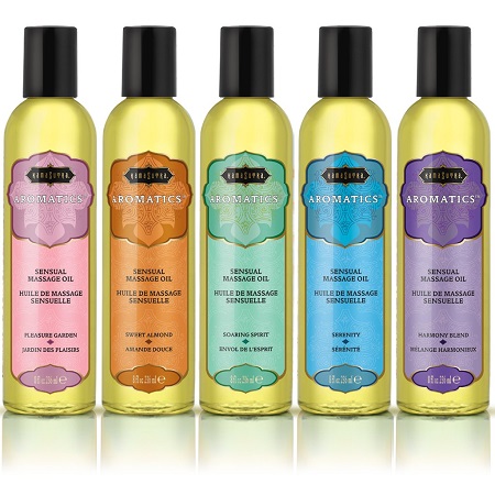 These Aromatic Massage Oils are made by Kama Sutra and are available for purchase online or in-store at Kiss and Make Up. These light, non-greasy formulas have been infused with the pure essential oils of Kama Sutra's exclusive Aromatic Botanicals, artfully blended for an enticing fragrance and uniquely powerful effect on body, mind and spirit. Each is enhanced with rich emollients and skin-nourishing Vitamin E.
